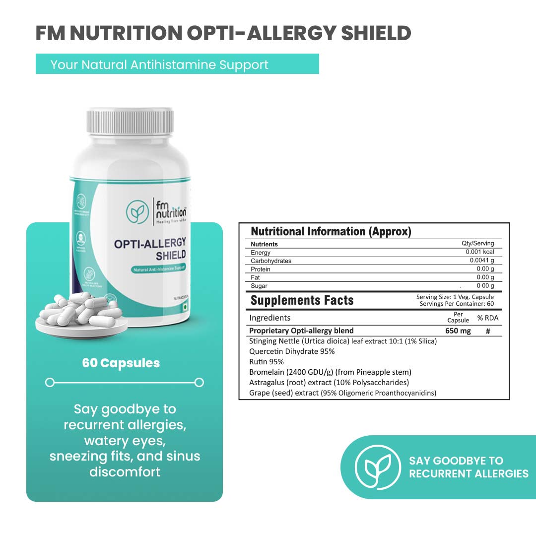FMN Opti-Allergy Shield | Natural Anti-Histamine Support | 60 Veg Capsules
