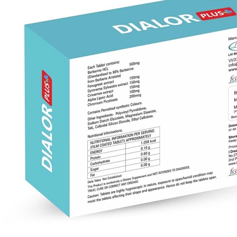 Livbio Dialor Plus is a potent blend formulated to support healthy blood sugar, insulin sensitivity, and metabolic balance. With key ingredients like Berberine, Gymnema, Fenugreek, Cinnamon, Alpha Lipoic Acid, and Chromium Picolinate, it also promotes mitochondrial function and gut health, making it ideal for managing metabolic and digestive imbalances. Key Benefits:- Blood Sugar Management: Helps regulate blood glucose levels, making it beneficial for individuals with diabetes or insulin resistance.