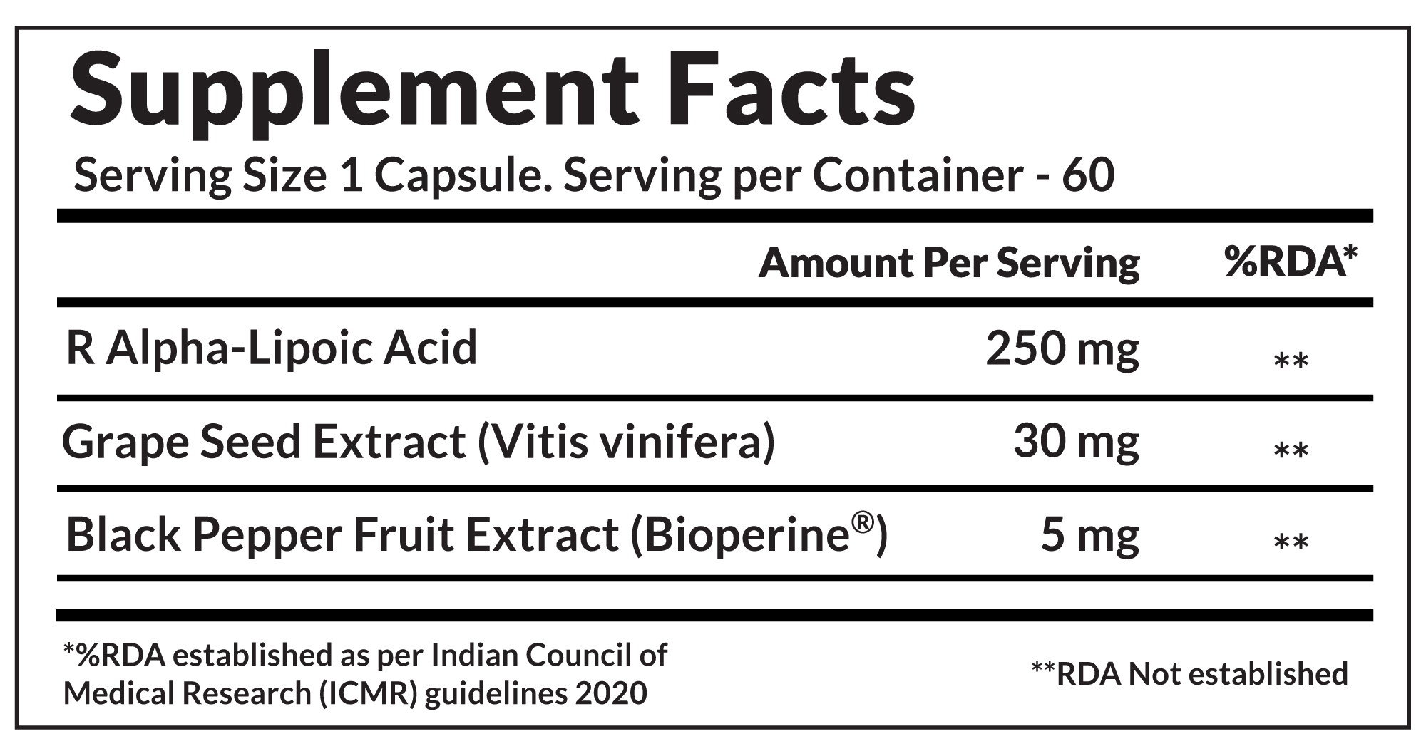 - Detoxification Support: R-ALA assist the body's natural detoxification processes by helping to neutralise toxins and heavy metals.