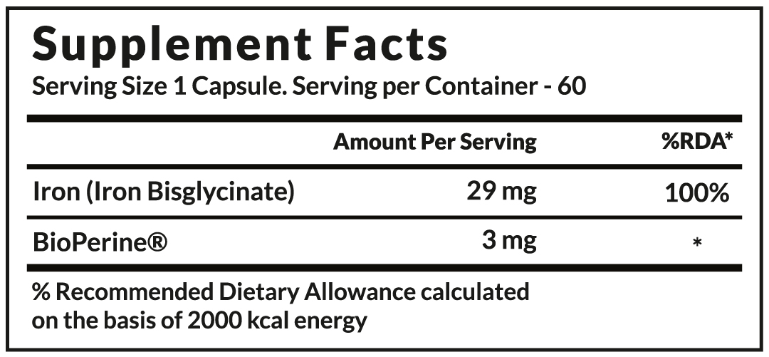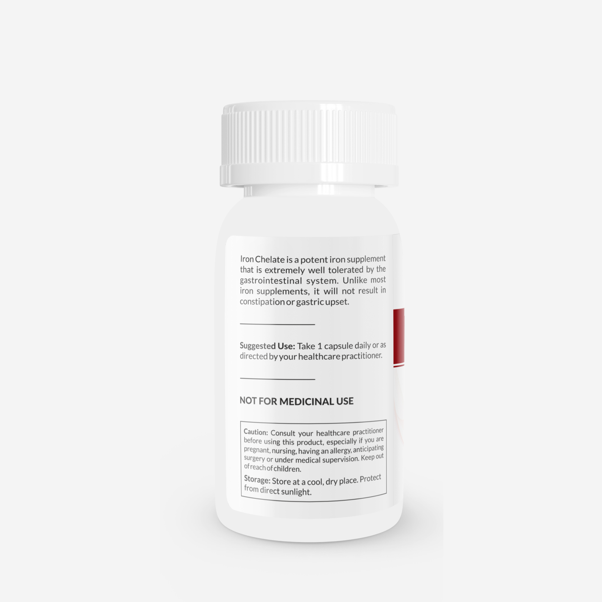Iron Chelate is a potent iron supplement that is extremely well tolerated by the gastrointestinal system. Unlike most iron supplements, it will not result in constipation or gastric upset. BioPerine® enhances the natural bioavailability of iron for maximum absorption and effectiveness.